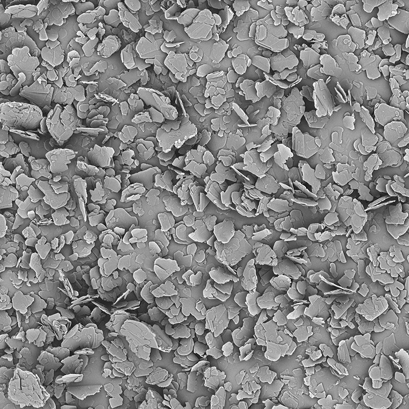 六方氮化硼,2000度左右高温烧结反应而成,六方形的分子结构、完美的石墨层状形态经剥片而成,是典型的电绝缘体、高导热性能,良好的润滑性、抗氧化性、抗腐蚀性和化学稳定性。氧气氛下耐温800度,惰性气体氛下耐温1800度,理论密度2.25g/cm³,莫氏硬度2,膨胀系数2×10-6,理论导热率35W/m.k,介电常数4。对大多数金属热熔体,既不润湿也不发生反应。联锴独特的生产工艺,使得产品片层圆润完整,提升了氮化硼粉体在树脂、橡塑等体系中的填充性能和分散效果。